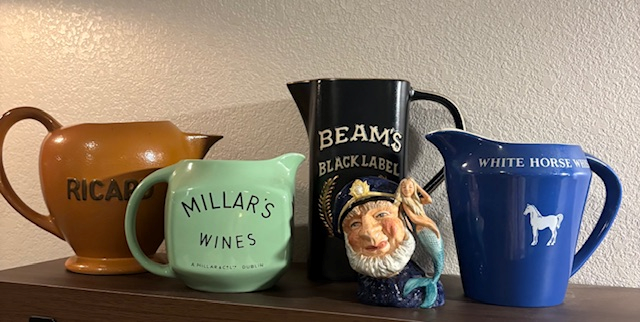 “Although I DO remember seeing these pitchers on the counters of various pubs I visited then and since,” Anne recalls, “the first time I encountered one in the U.S. was at a vintage mall in Galveston—for Beefeater Gin! At first sight, it rekindled those fond memories from half a century ago and I’ve been a collector since. But, it’s time to pare down my collection.”