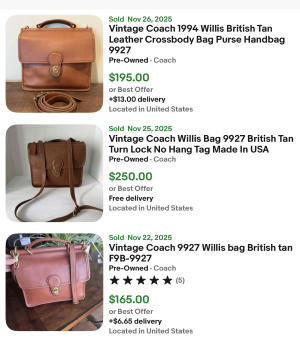 Noted for the supple leather of many of its bags, the Coach company has been in the business of purse-making since 1941 when its first handbag was produced in the family-run workshop in New York City. In its 85-year-old history, the Coach company has become synonymous with quality and American tradition. One of Coach’s most iconic models produced in the mid-1990s is available in DiAnnetiques and in excellent condition. Diane’s Willis bag is a medium-sized crossbody with a turnlock closure and made of a soft glove-tanned leather. Although several bags of these same bags have sold in the last few weeks on Ebay for significantly more, this particular purse has a pricetag of $135.